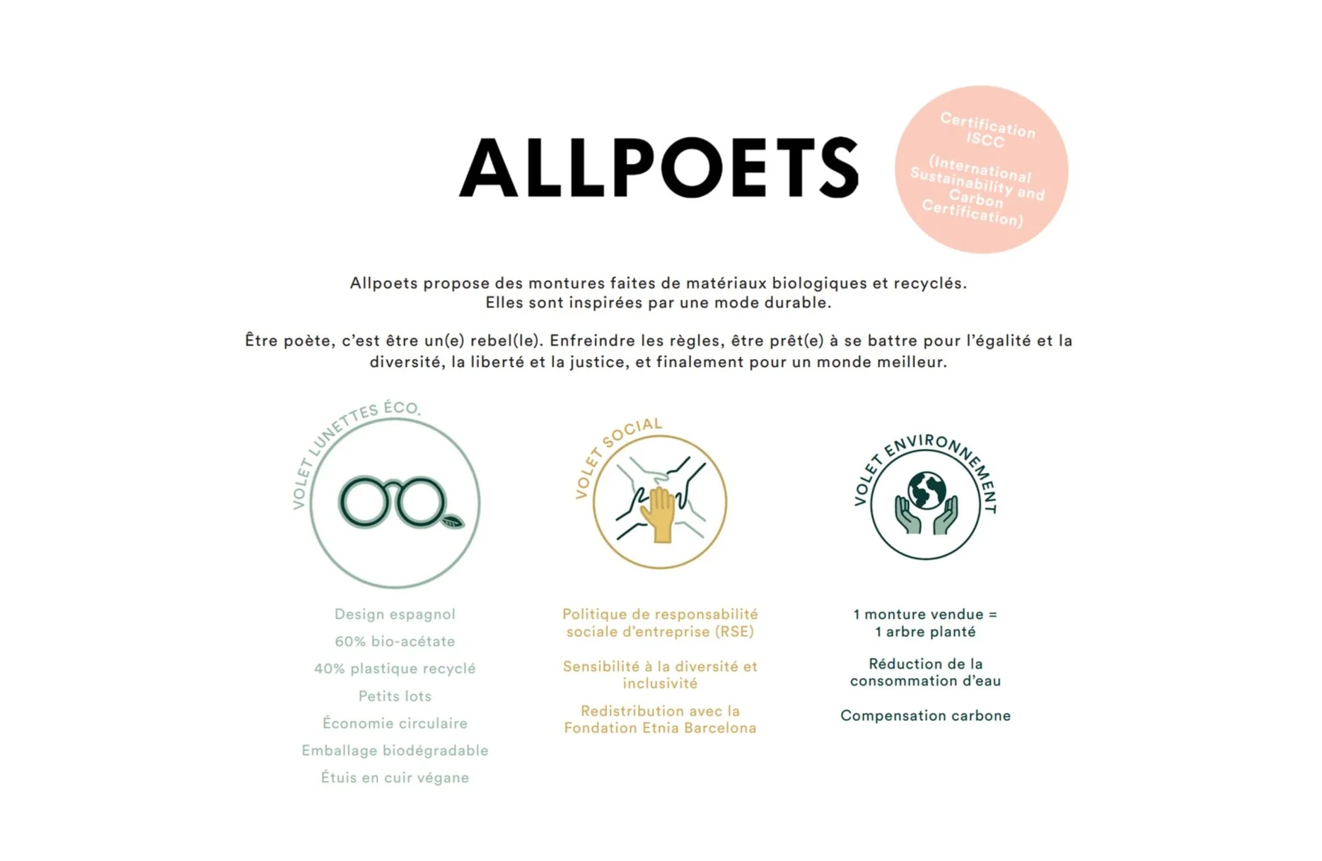Monture de forme ovale. Un vent de changement est nécessaire! Rebelle dans l’âme, la collection Allpoets ne suit pas les règles en prônant la diversité, l’égalité et la liberté. Chaque monture porte le nom d’un ou d’une poète célèbre car après tout, nous sommes tou·tes poètes.